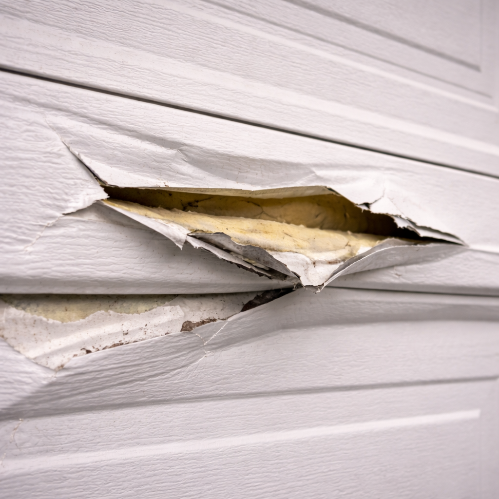 Most homeowners first notice something is wrong when the garage door won’t lift or feels much heavier than usual. Other common signs also include:
