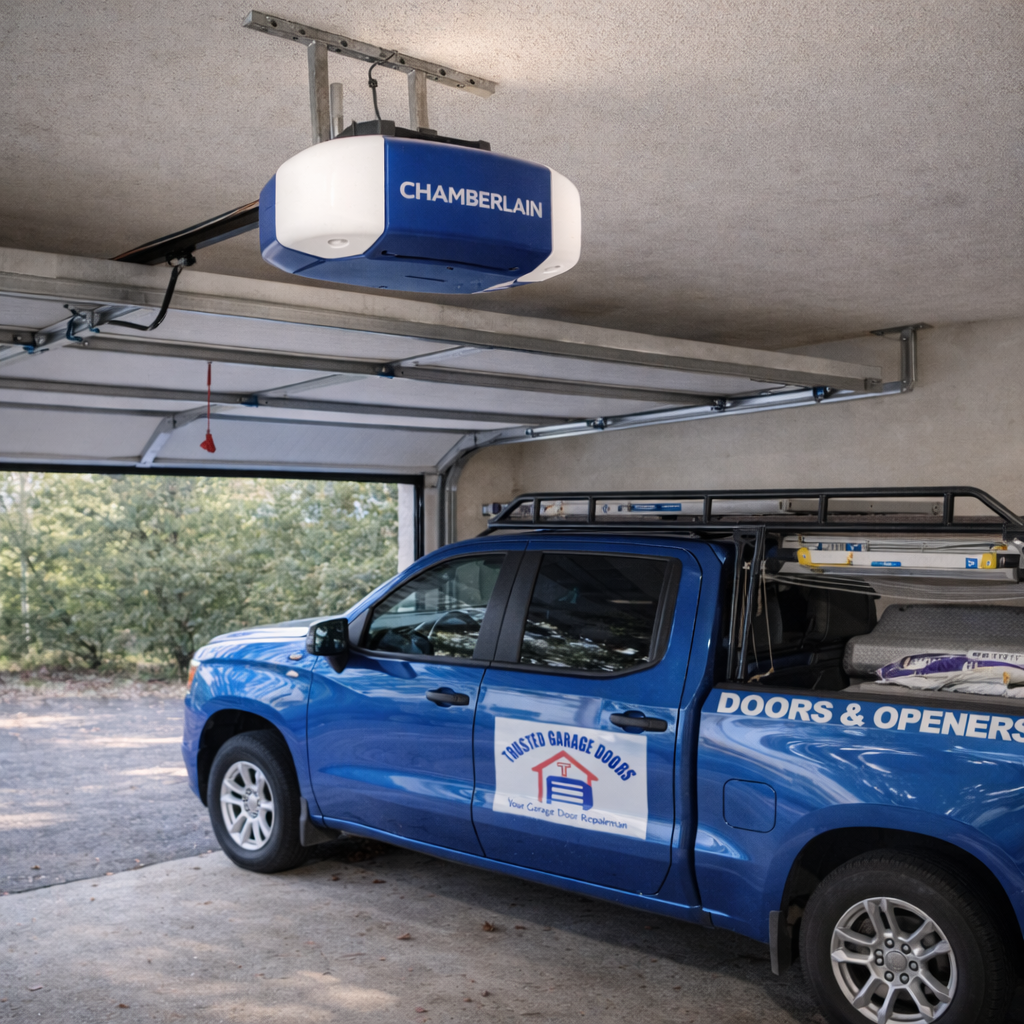 Trusted Garage Doors specializes in properly sizing and installing high-cycle springs to ensure long-lasting performance, safe operation, and a door that runs smoothly from day one.